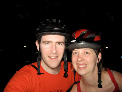 we were supposed to stay for the sunrise. it was 4 am. the sun rose at 5:30. our arms hurt (not our legs because we gripped the brakes more than we peddled). our butts hurt (because it took us about an hour longer than any 25 mile ride should take and we weren't prepared). our tummies and heads hurt (because we had no more water after finishing our own). and so we lugged our bikes back to the el.