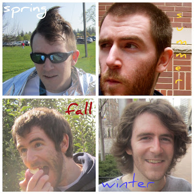 all year Nick's hair grows from the furry summer head to the fall's scruffy-ness to the flowing locks of winter, and each spring, as relaibly as the changing seasons, the start of spring begins with the great shave and the beginning of the spring buzz.